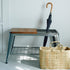玄関先に置けるスリムなベンチに傘立てを加えた便利なアイテム。