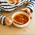このうつわは、スプーン食べの子どもでも使いやすいように、ふちが少し丸まったかたちになっているのでご飯がすくいやすく、一人で食べ始めた子どもにもやさしいうつわです。